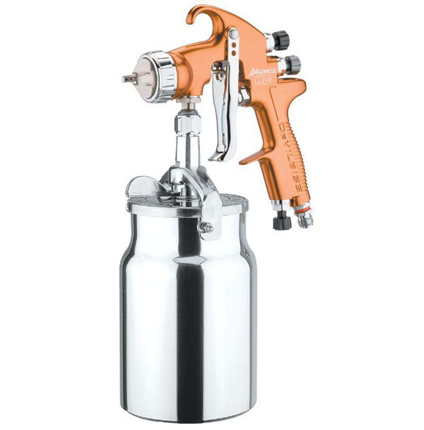 ADVANCE HD S Model sa lončetom dole je pištolj sa aluminijumskom bocom od jednog litra sa dopremom boje putem usisavanja.